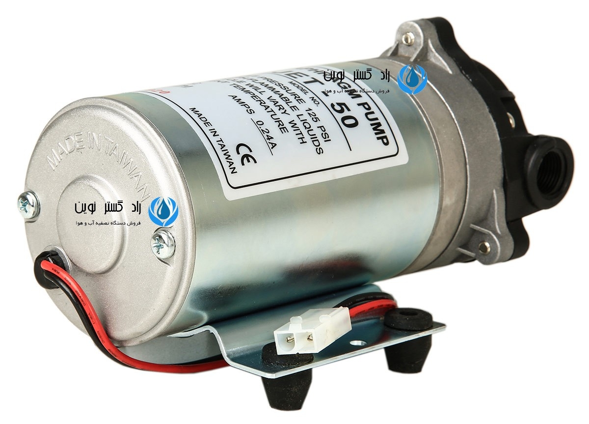دستگاه تصفیه آب اسمز معکوس یک پمپ دارد که به جریان برق وصل است. کار این پمپ بالا بردن فشار آب است تا آب بدون مشکل از داخل دستگاه عبور کند و به قسمت خروجی برسد و به راحتی از آن استفاده کنید. پمپ دستگاه ممکن است در اثر موارد مختلف دچار عیبهایی شود. اگر احساس میکنید فشار آب خروجی دستگاه کم شده است خرید پمپ دستگاه تصفیه آب هیدون مدل Jet-50 گزینهی ایدهآلی است.